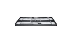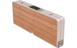 Stabiler und praktischer Klapptisch. Zum Transport lässt sich die Platte mittig teilen und wie ein Koffer zusammenfalten. Daher ergibt sich ein geringes Packmaß bei großer Nutzfläche.