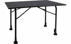 Die Tischplatte aus wetterfestem, mehrschichtigen Glasfasermaterial hat keine Kante und somit kann Wasser und Schmutz einfach ablaufen. Dank einer modifizierten Klapptechnik ist unter dem Tisch viel Beinfreiheit und alle 4 Tischbeine sind in Höhe und Neigungswinkel verstellbar – zum Ausgleich möglicher Unebenheiten.